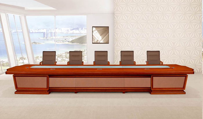 產品分類: 實木會議臺 產品型號:HY-A2064 產品規(guī)格:6400W×2200D×780H 產品材質:E1級中纖板、貼天然實木皮,實木封面,“易涂寶”牌環(huán)保油漆 產品顏色:泰柚木